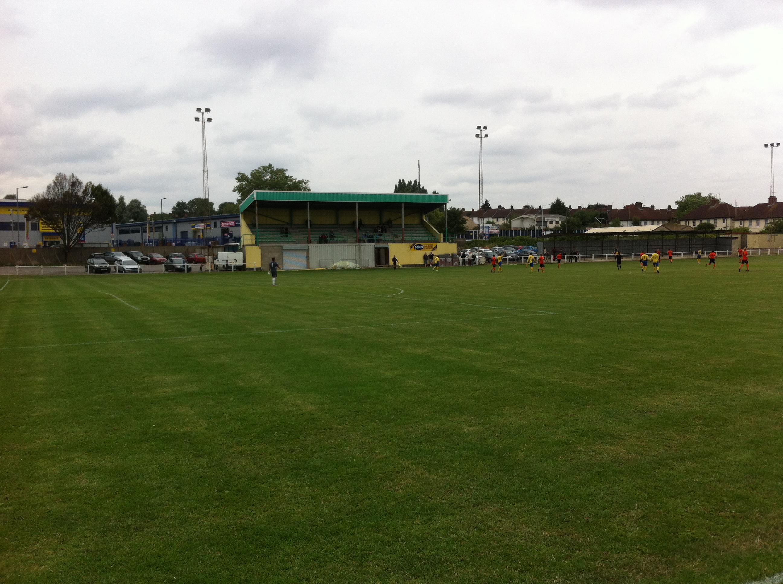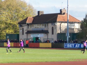 st marOasi di pace. Arrivato presto ho beccato tutta la squadra di casa nella club house (niente drink) a vedere Fulham v ManU. Un paio di pinte e due pie dopo ero a bordo campo insieme ad altre 30 persone. La tribunetta laterale e’ rialzata rispetto al campo e da’ una prospettiva piuttosto unica. Il bar interno ha poche cose ma buone, tutti sono gentili, sorpresi di vedere qualche curioso gironzolare nel loro impianto. Gli ospiti, ultimi in classifica, subito sotto, trovano per caso il pareggio ma poi soccombono visto che davanti hanno veramente poco da offrire. Finiscono anche in 10 per l’espulsione del numero 12 da poco subentrato.